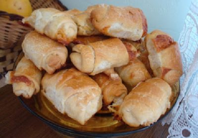 Нареждат се в намаслена тава, мажат се с жълтък и се пекат на 180-190 градува 20-25 мин.