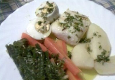 Гарнира се с приготвените на пара картофи и моркови и вареното яйце.